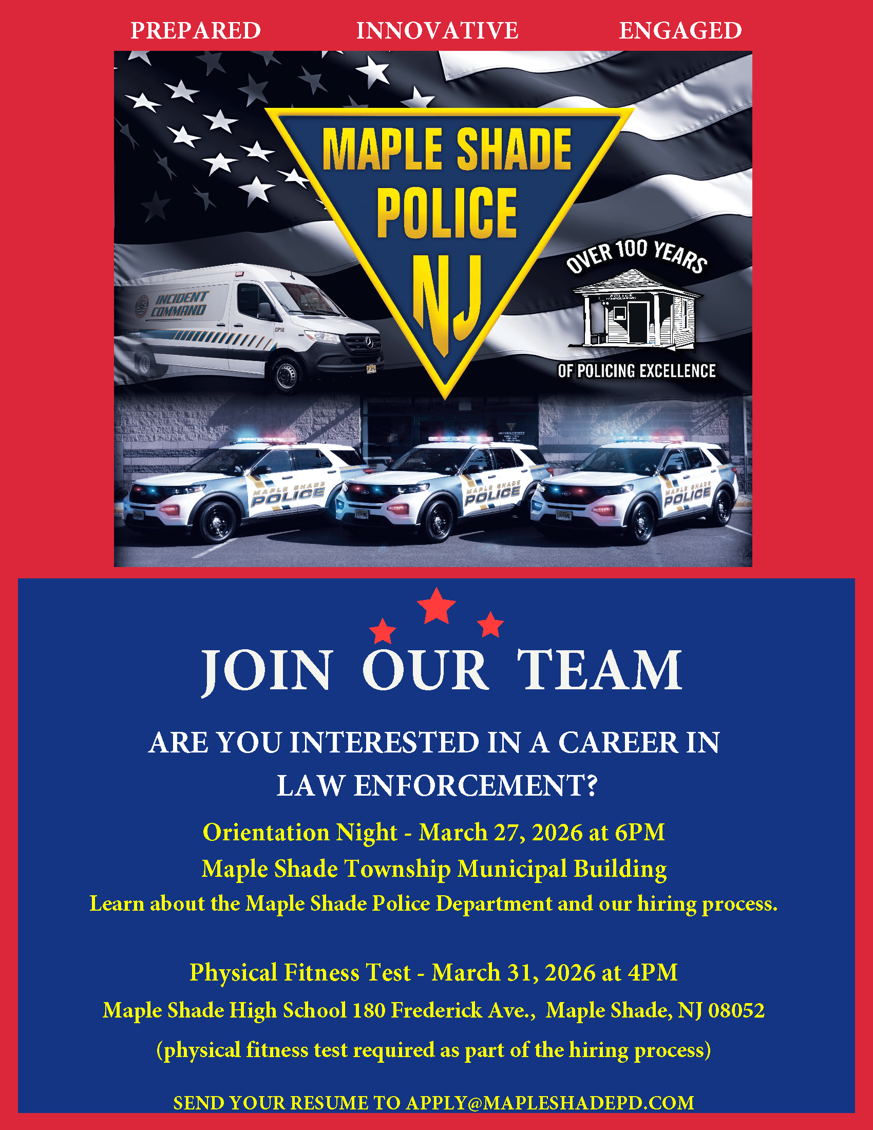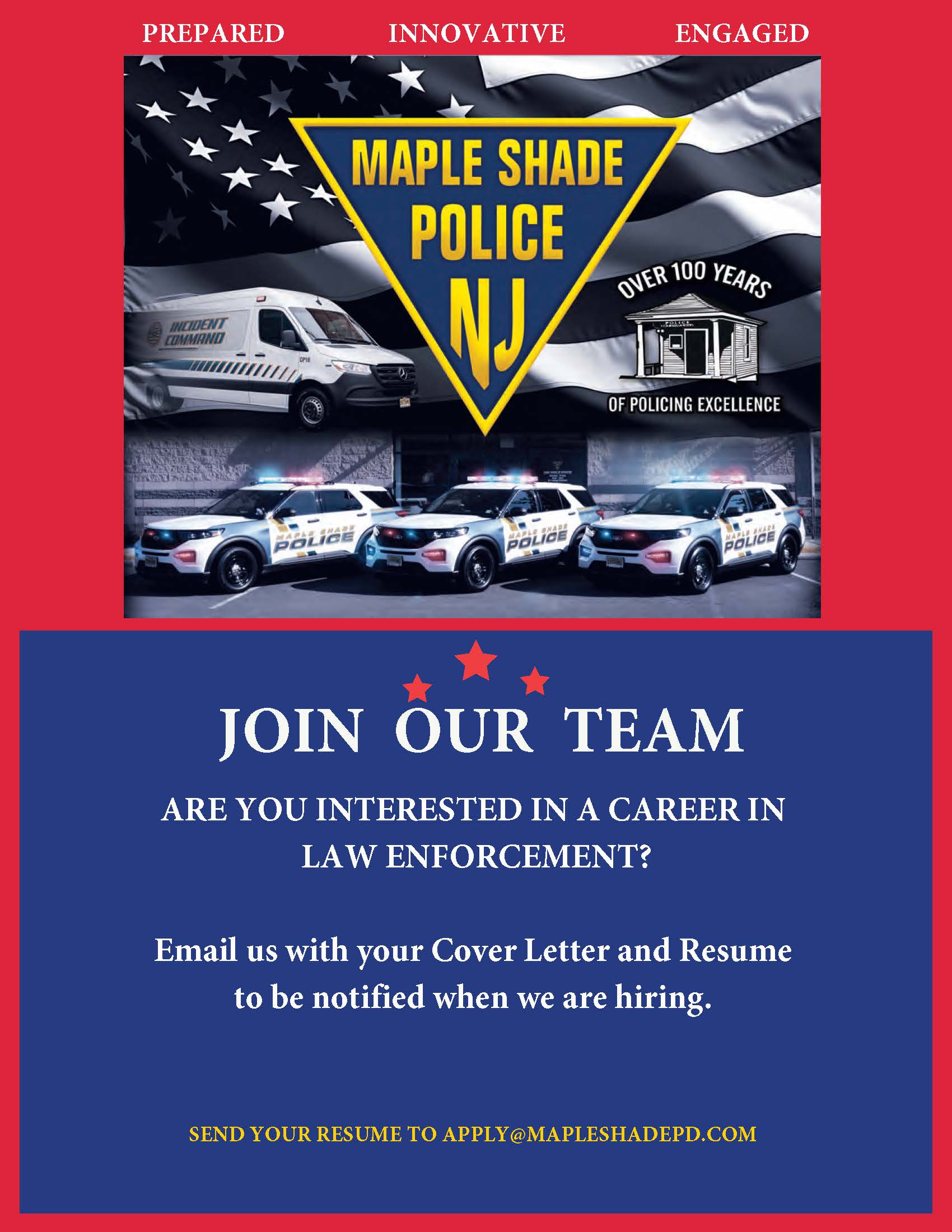 On behalf of the employees of the Maple Shade Police Department, I want to thank you for taking time to visit our website.